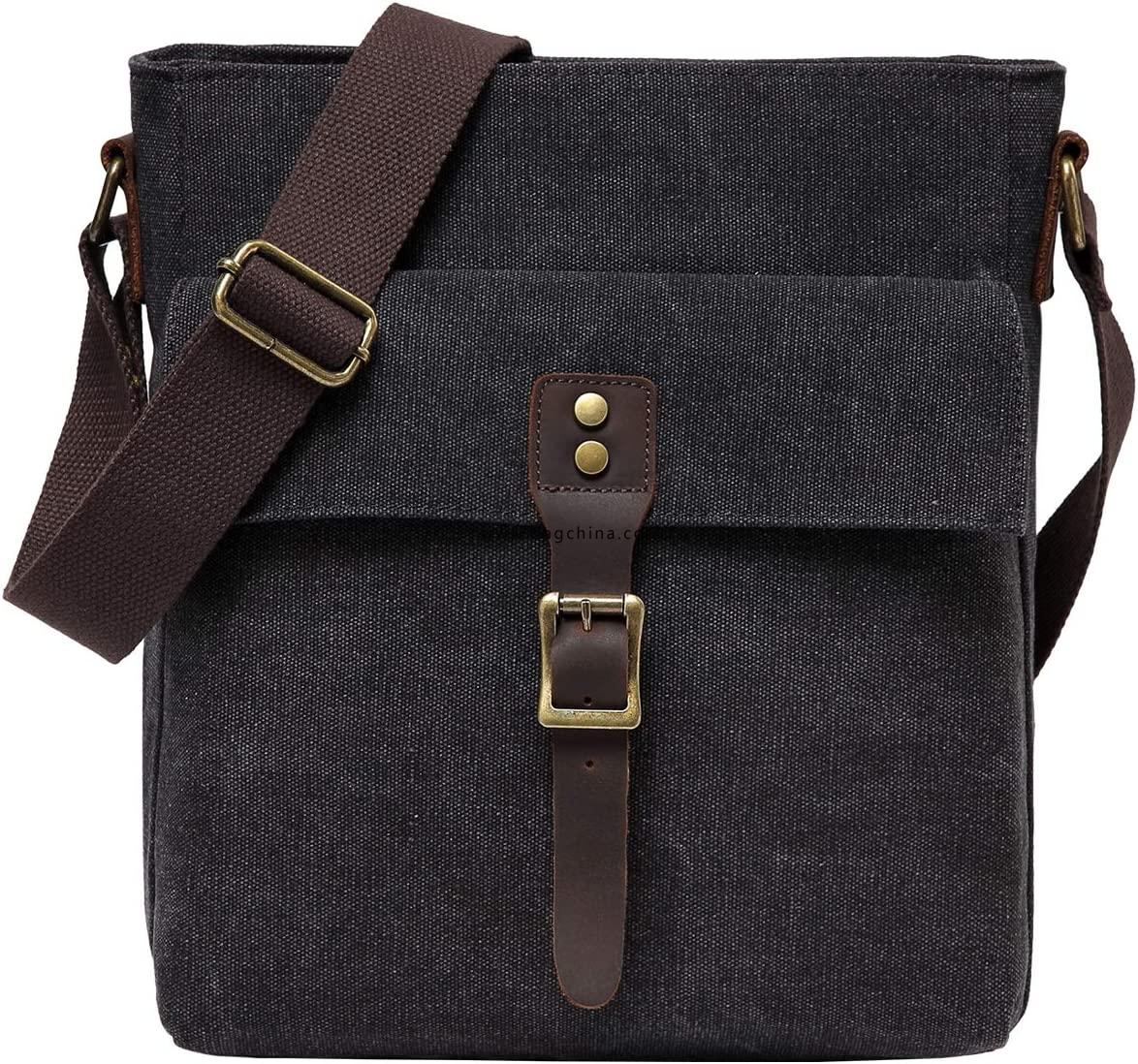 VINTAGE STYLE: This small messenger bag is made of water resistant canvas and superior quality cowhide leather, which is durable. The square appearance and the front decorative leather buckle make it a vintage and unique look. A zippered pocket under the flap is for your easy-access stuff and ensuring the security.