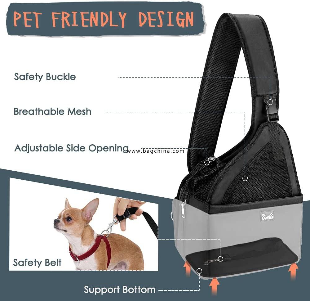 This dog sling is equipped with a detachable hard plate bottom, plus the breathable mesh, skin friendly fabric, which make sure your pet stay comfort inside. The adjustable safety hook inside the bag can be linked to pet’s collar or harness, preventing pet jumping out accidentally.