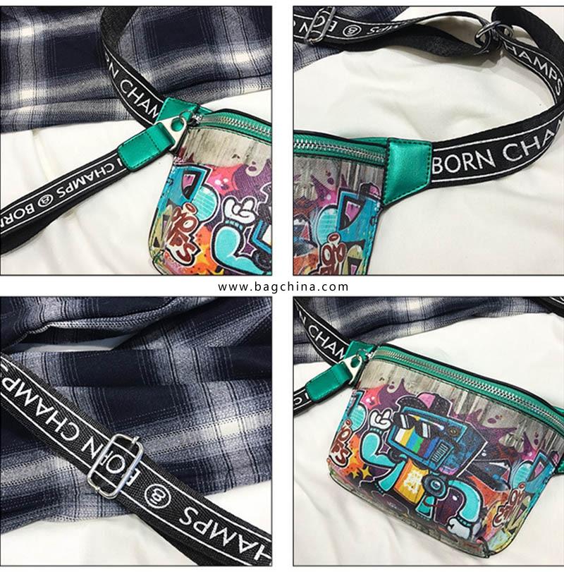 Product description: PU Waterproof Women's Waist Bag High Quality Shoulder Crossbody Chest Bag Female Fanny Pack Geometric Cartoon Banana Belt Bag