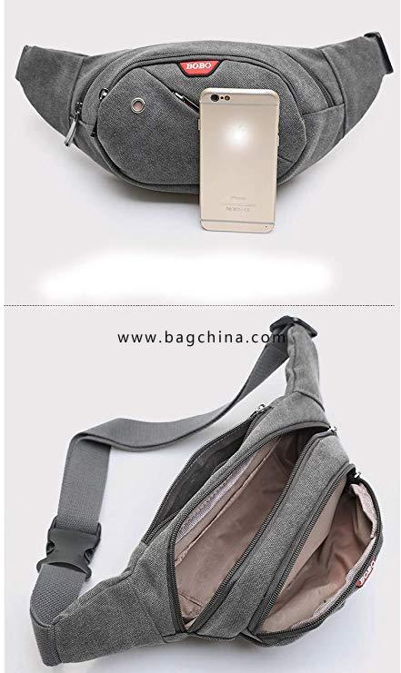 Canvas Fanny Pack Quick Release Buckle with Earphone Hole Sling Belt Bag Waist Pack