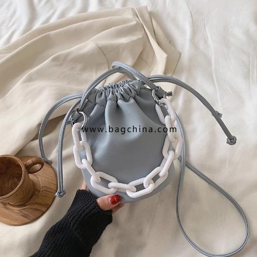 Product description: Solid Color PU Leather Mini Bucket Bags Female Crossbody Bags 2020 Summer Women Travel Chain Shoulder Handbags White